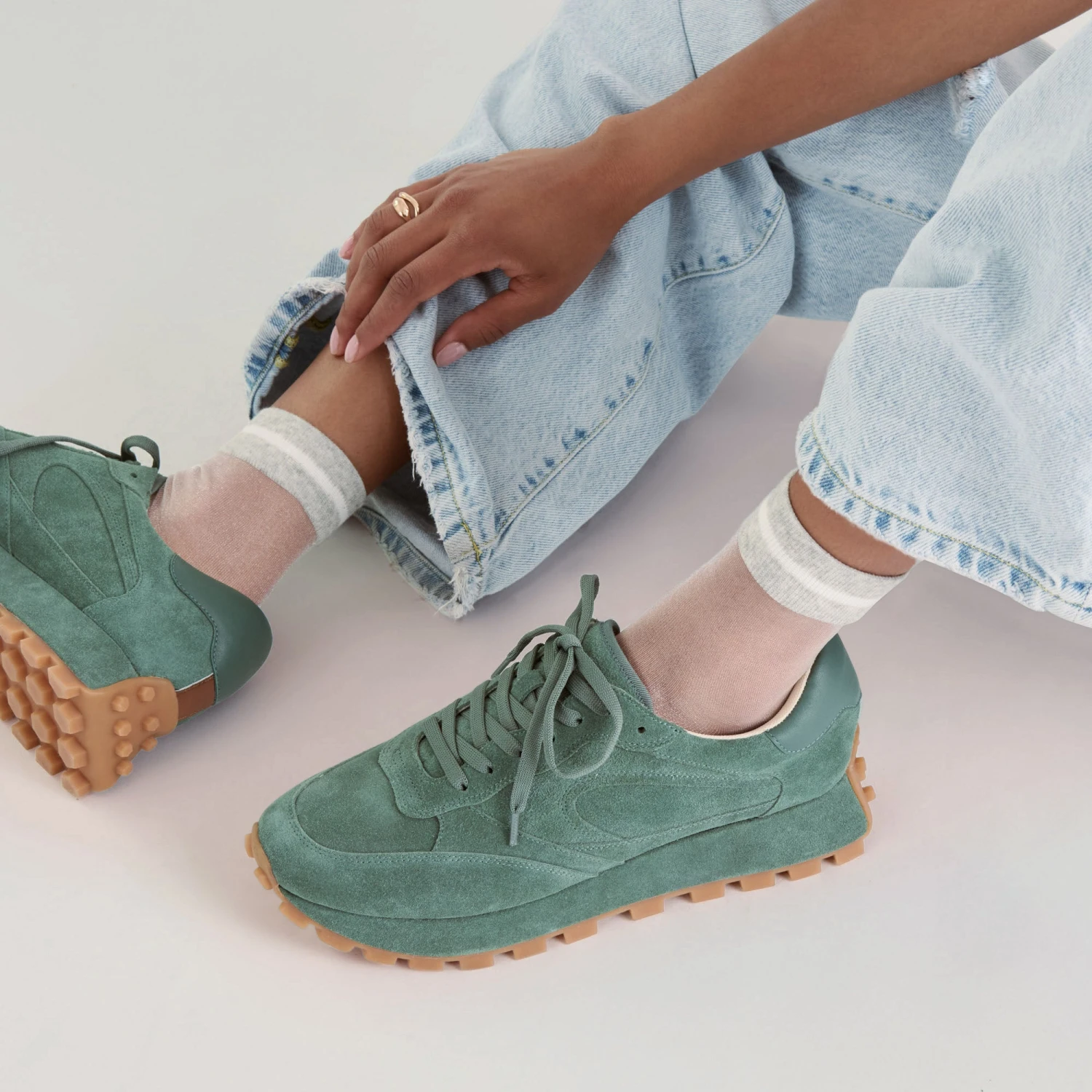 - Sheer Ankle Sock with Striped Cuff