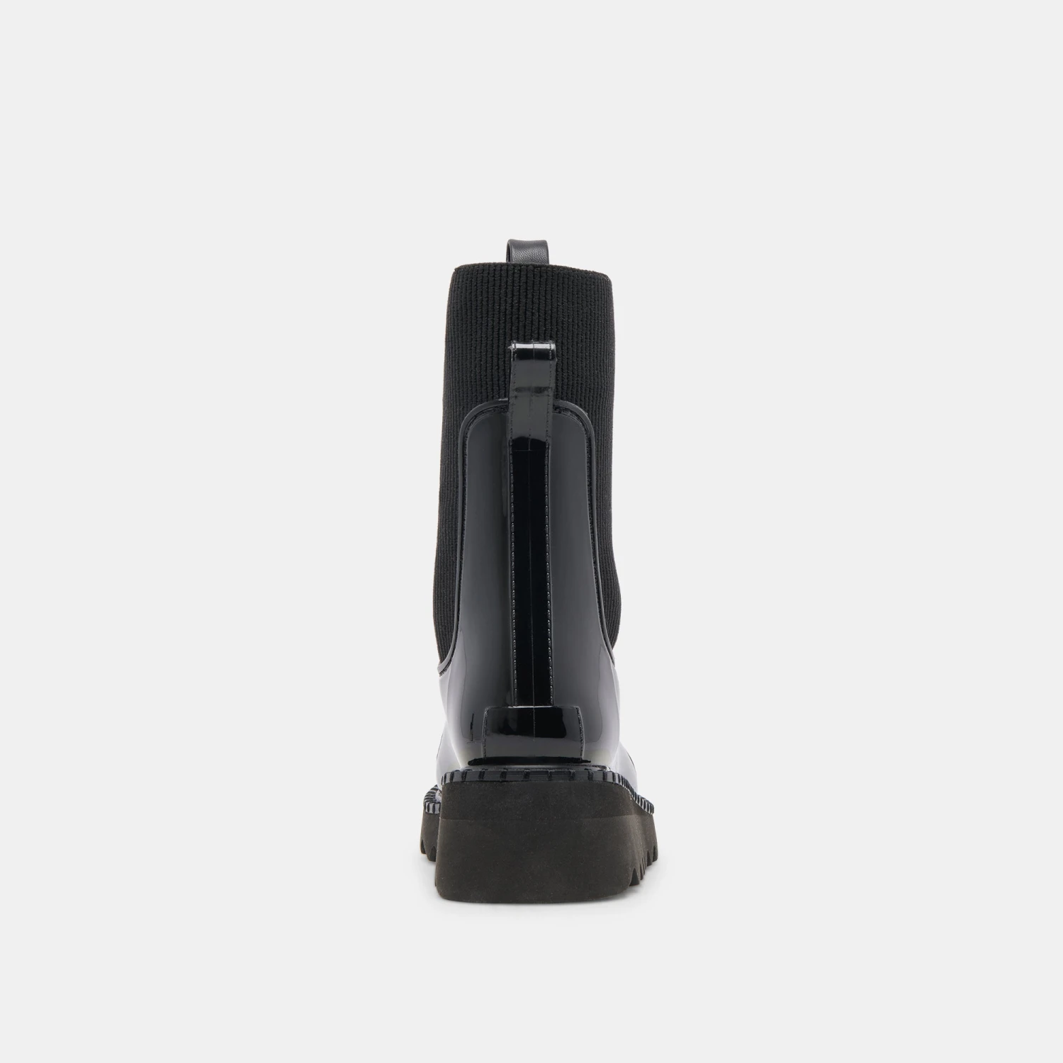 TROPIC H2O is the epitome of form meets function with a toothy sole, waterproof patent leather, and a comfy knit, sock-like shaft. This modern take on a rainboot won’t go unnoticed.